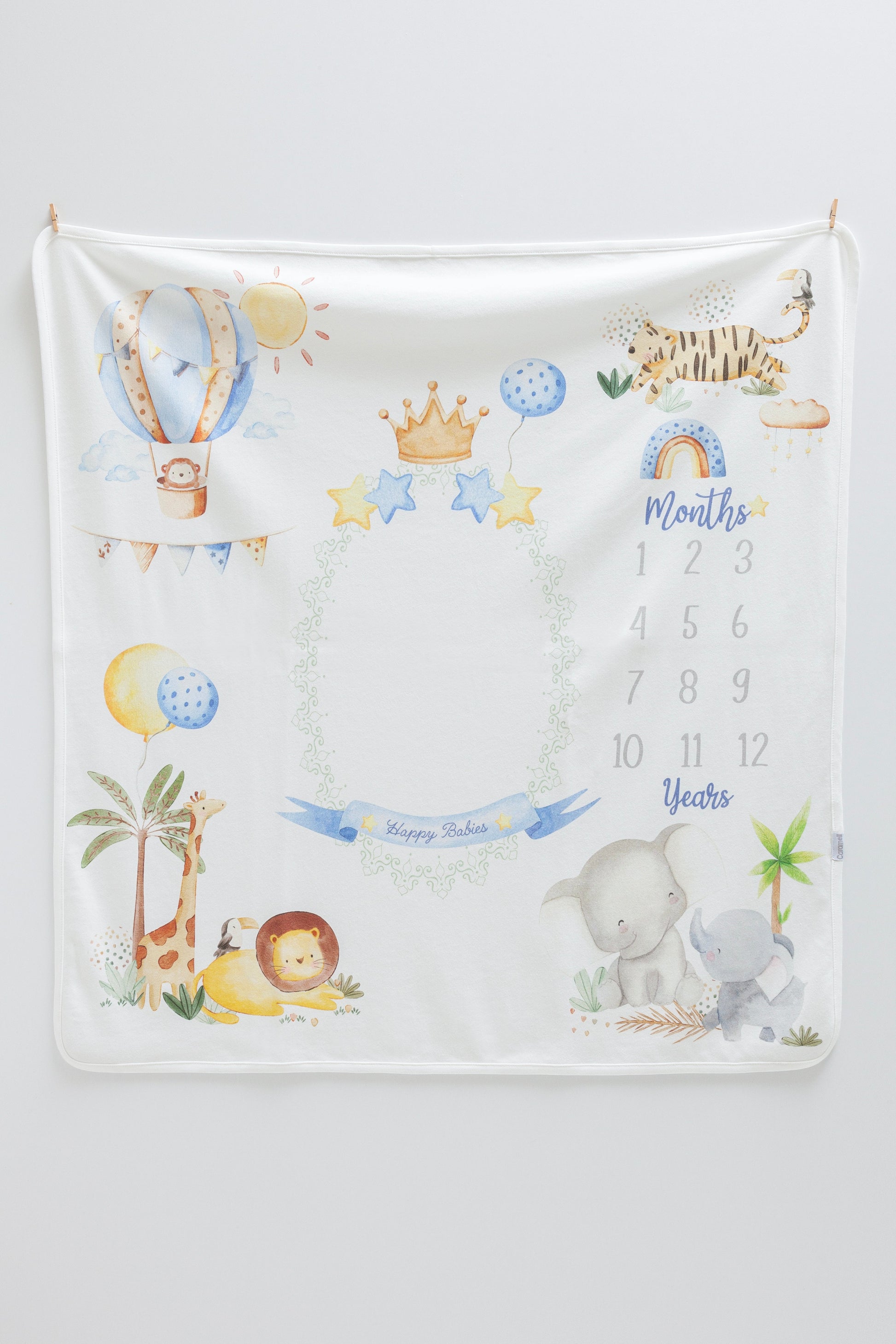Capture every wild and wonderful moment with our Safari Milestone Blanket—your perfect photo backdrop for documenting baby’s first year! Featuring adorable safari animals, this soft and lightweight blanket adds a fun, adventurous touch to milestone photos.