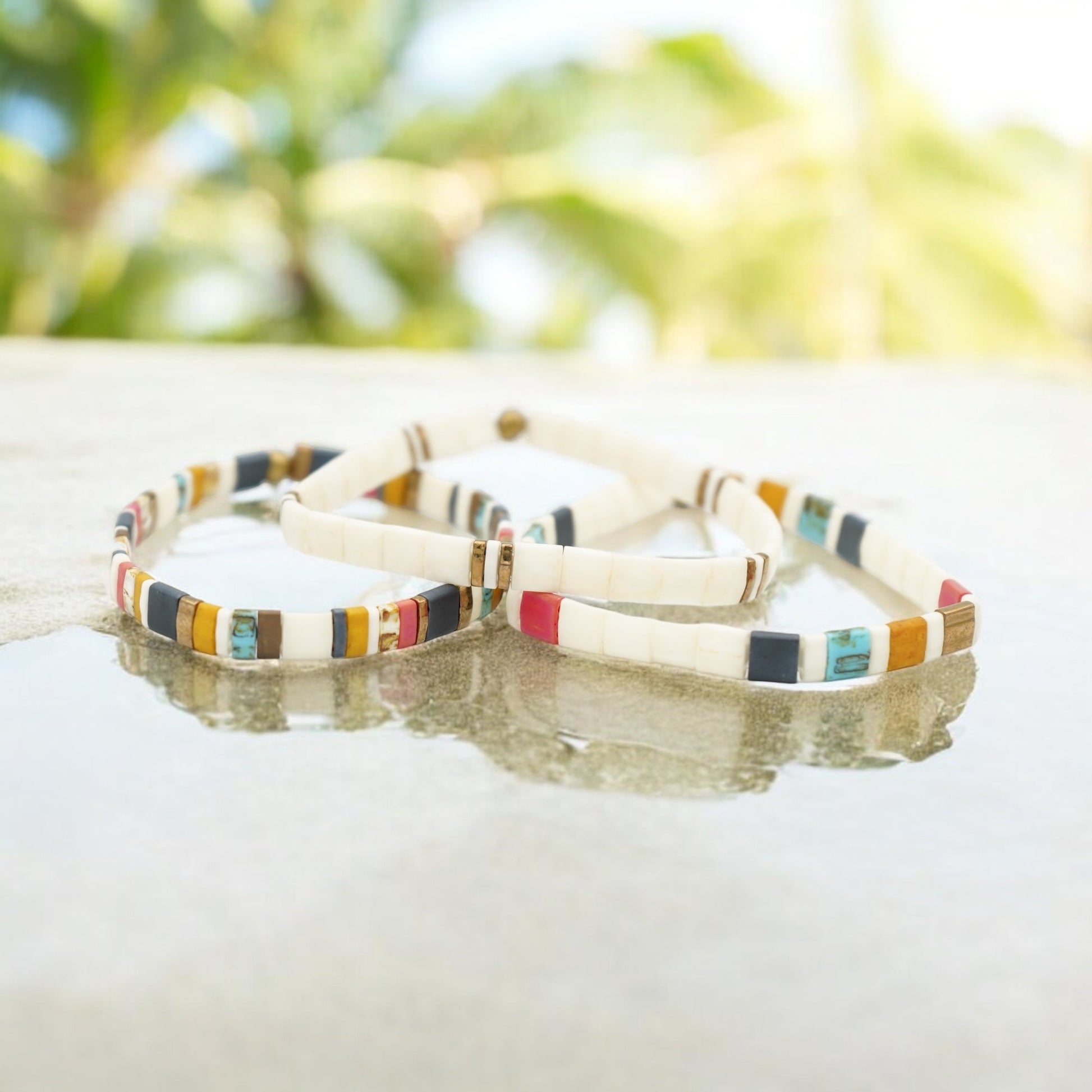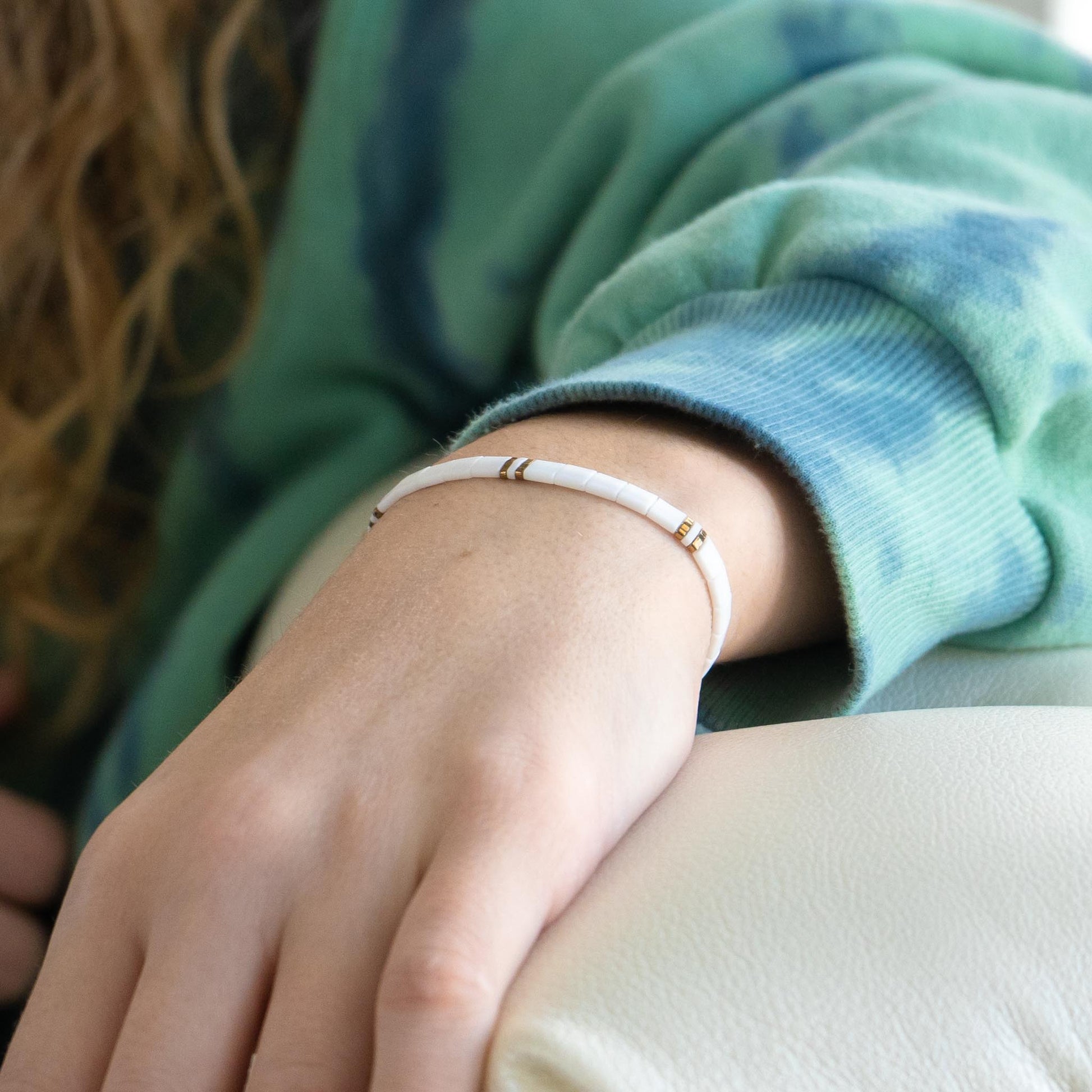 Tila Bracelets by Mack & Rex are NOT your typical beaded bracelets! We proudly back up our bracelets with a quality guarantee (yes, on stretchy bracelets!) and know that you will love them! They are made with an expensive crystal cord elastic, as well as glass tile beads from the top manufacture in Japan. In addition to being beautiful, our stretchy bead bracelets are:
