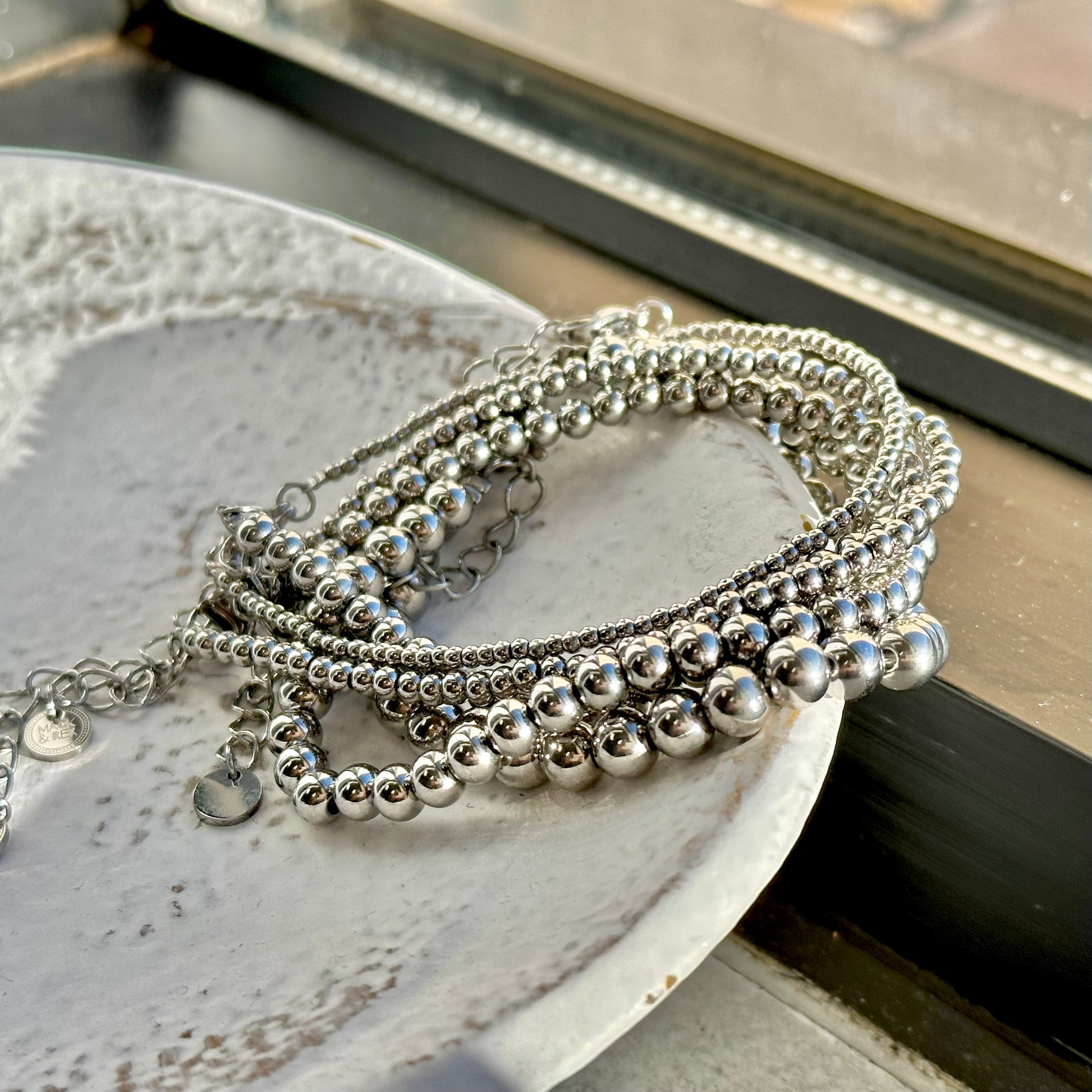 Introducing our premium silver ball bracelets, crafted from real 925 sterling silver with extra-thick plating over solid, heavy steel. With their high quality and weighty feel, you'll love wearing these bracelets every day. And don't worry, they're still comfortable to wear! Plus, you can adjust the size to fit up to an 8-inch wrist, making them perfect for anyone. We offer a variety of bead sizes for our silver ball bracelets, including 2mm, 3mm, 4mm, 5mm, and 6mm. You can also mix and match with our stack of silver ball bracelets for a stylish and discounted option. For those who prefer gold, we also have 18k gold-plated ball bracelets available for purchase individually or as a set at a discounted price. Don't miss out on these must-have accessories!