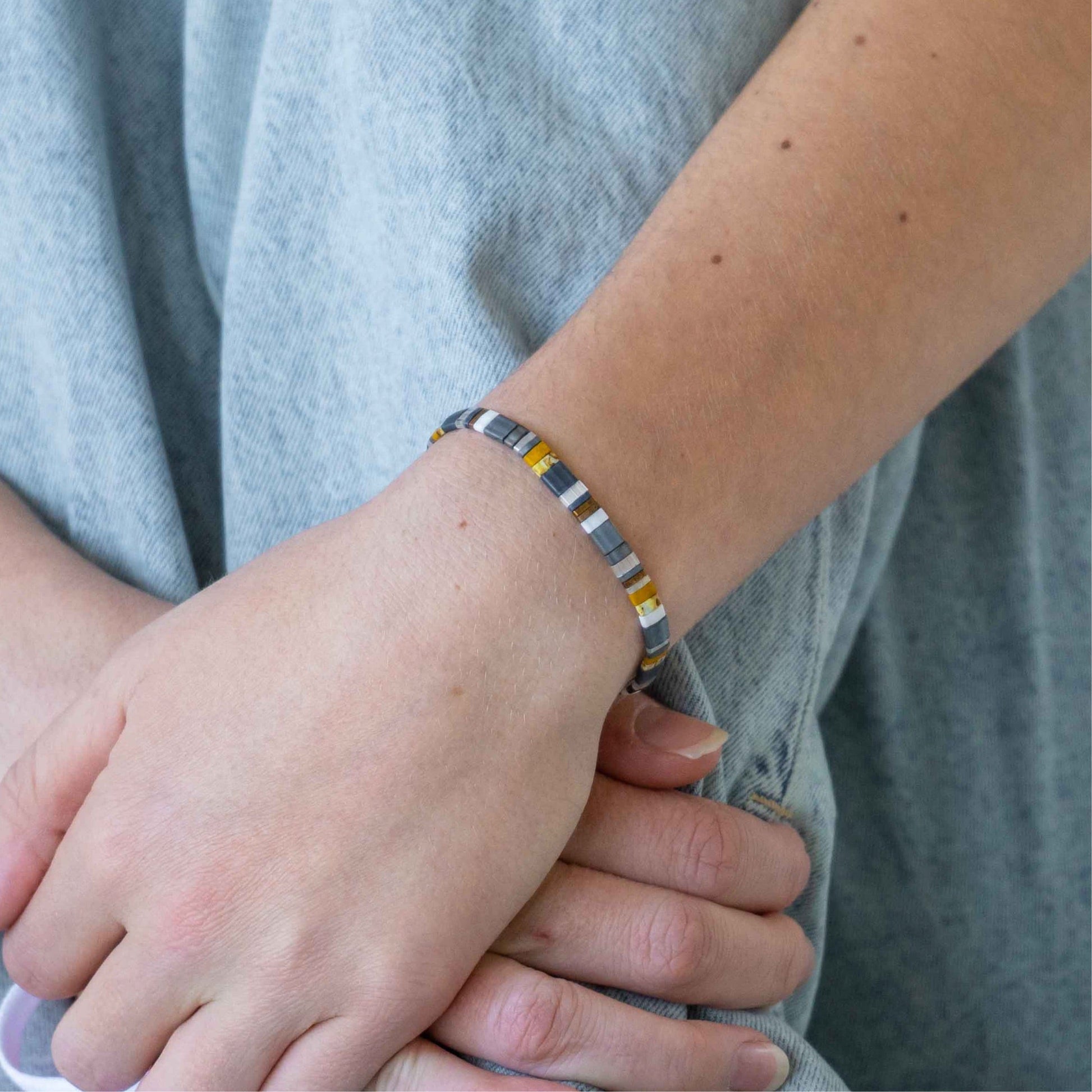 Tila Bracelets by Mack & Rex are NOT your typical beaded bracelets! We proudly back up our bracelets with a quality guarantee (yes, on stretchy bracelets!) and know that you will love them! They are made with an expensive crystal cord elastic, as well as glass tile beads from the top manufacture in Japan. In addition to being beautiful, our stretchy bead bracelets are: