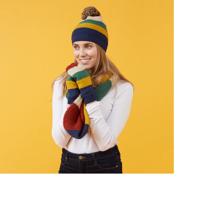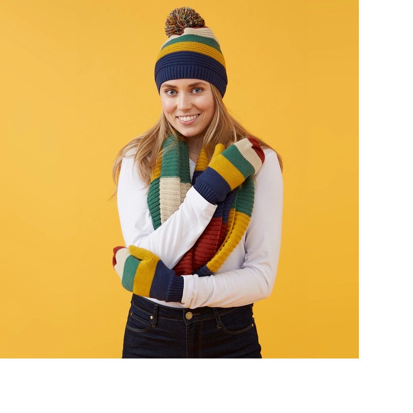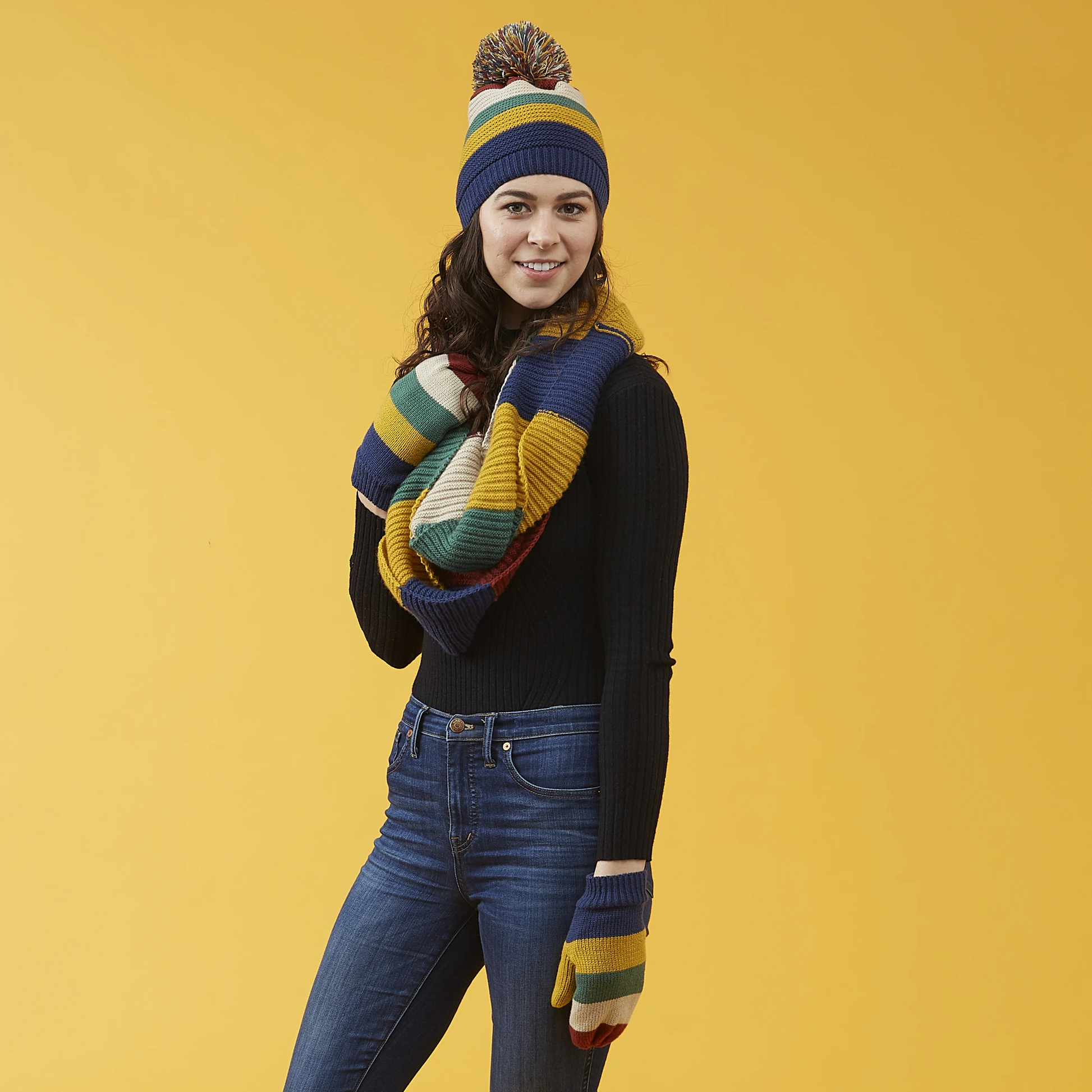 This striped beanie with a pom pom is super cute! Colorblock is all the rave and on trend! Soft to the touch, this beanie will definitely keep you nice and toasty on all those cold winter days and nights! We also sell the matching scarf and would make a really nice gift set!