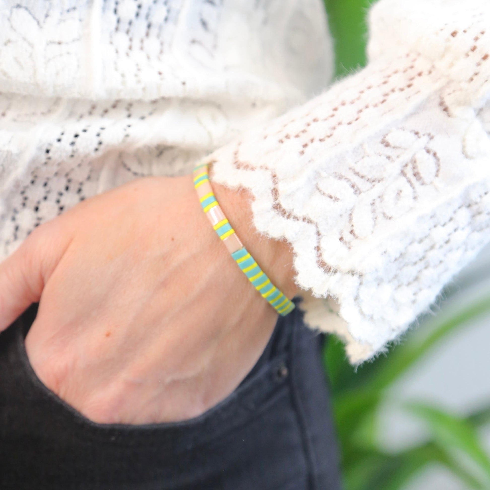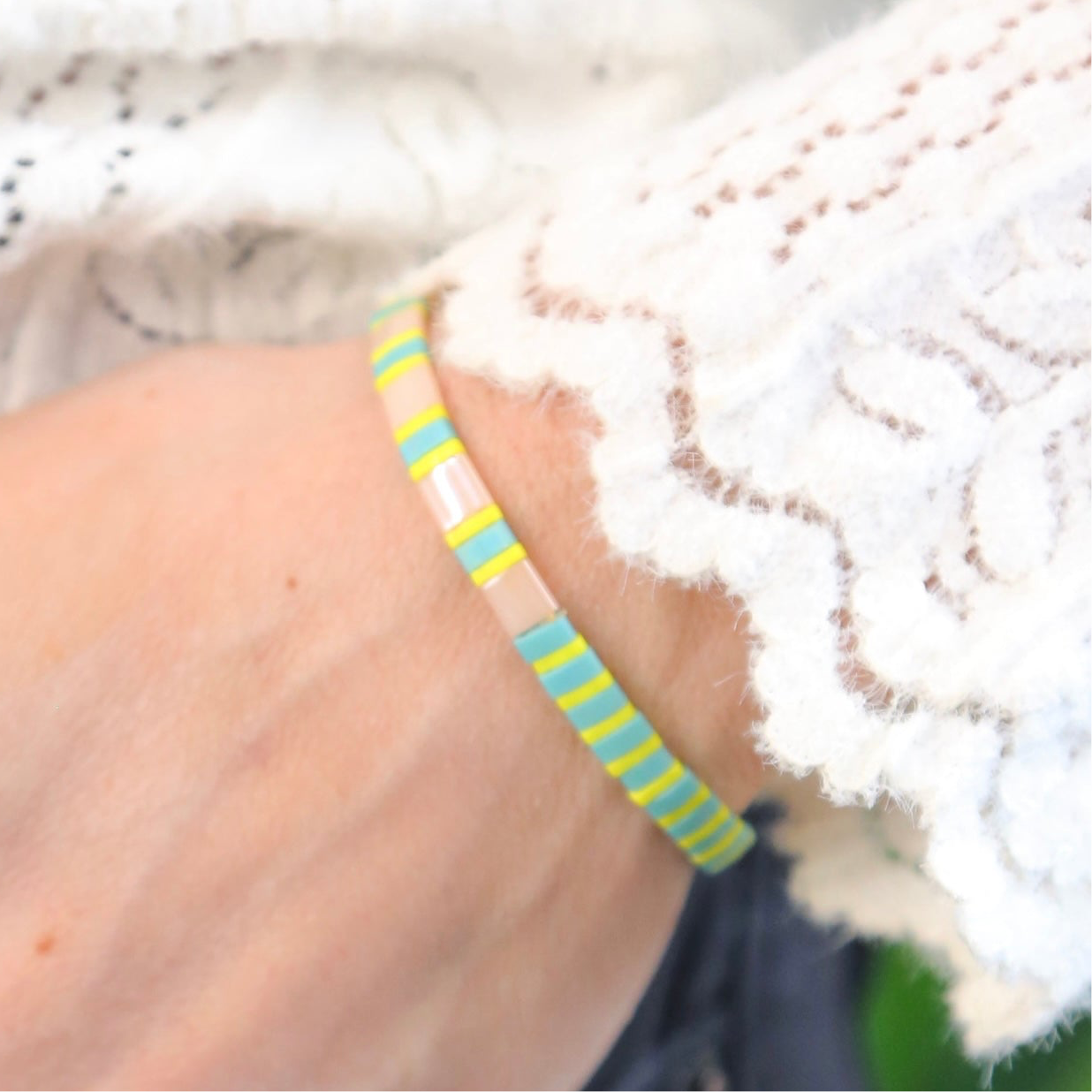 Tila Bracelets by Mack & Rex are NOT your typical beaded bracelets! We proudly back up our bracelets with a quality guarantee (yes, on stretchy bracelets!) and know that you will love them! They are made with an expensive crystal cord elastic, as well as glass tile beads from the top manufacture in Japan. In addition to being beautiful, our stretchy bead bracelets are: