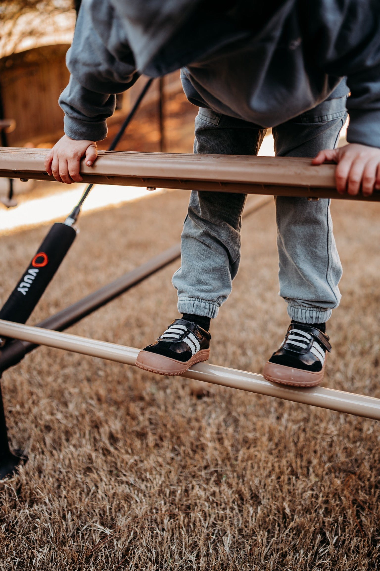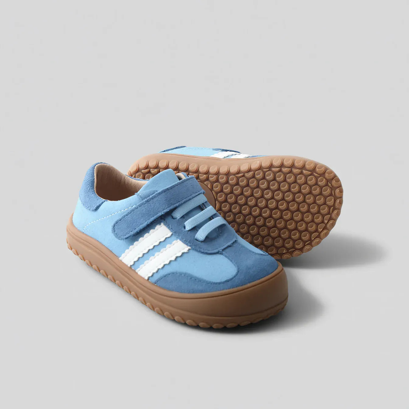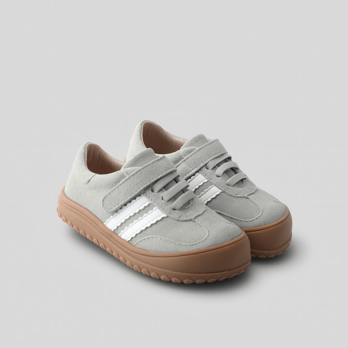 The Asha Sneaker is designed to keep up with every adventure while supporting natural foot development. Featuring a durable rubber-capped toe, wide toe-box, and our signature barefoot sole, this sneaker gives little feet the room and flexibility they need to move with confidence. The Velcro closure and elastic laces create an easy, adjustable fit, while the wide opening makes on-and-off a breeze for kids and parents alike. Finished with a sporty athletic stripe, the Asha Sneaker blends comfort, function, and style; perfect for everyday play, school days, and every moment in between.