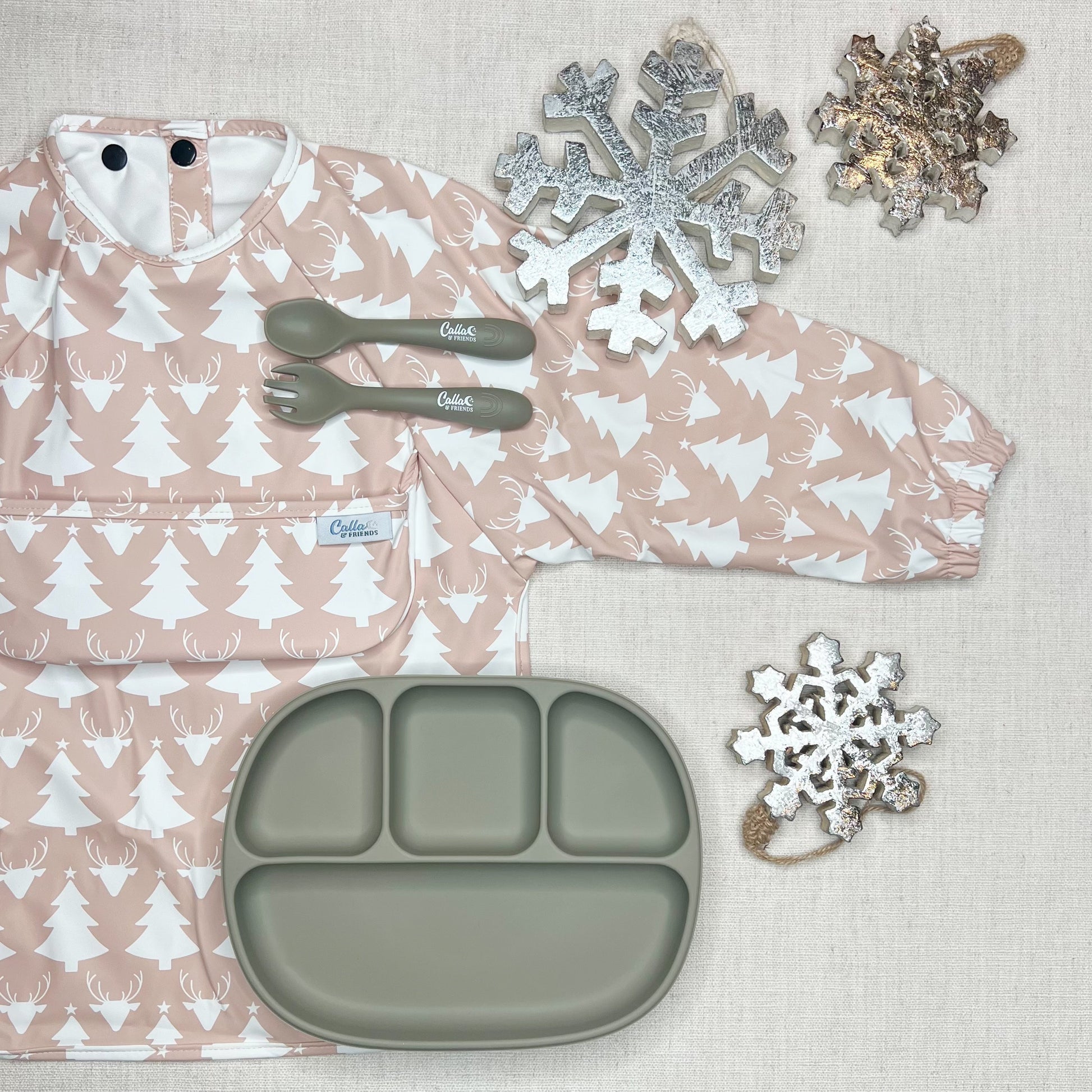 Our Limited Edition Antlers & Pines Grayson Long Sleeve Bib, the perfect festive addition to your little one's mealtime attire. Designed with both style and functionality in mind, this bib is a must-have for the holiday season.