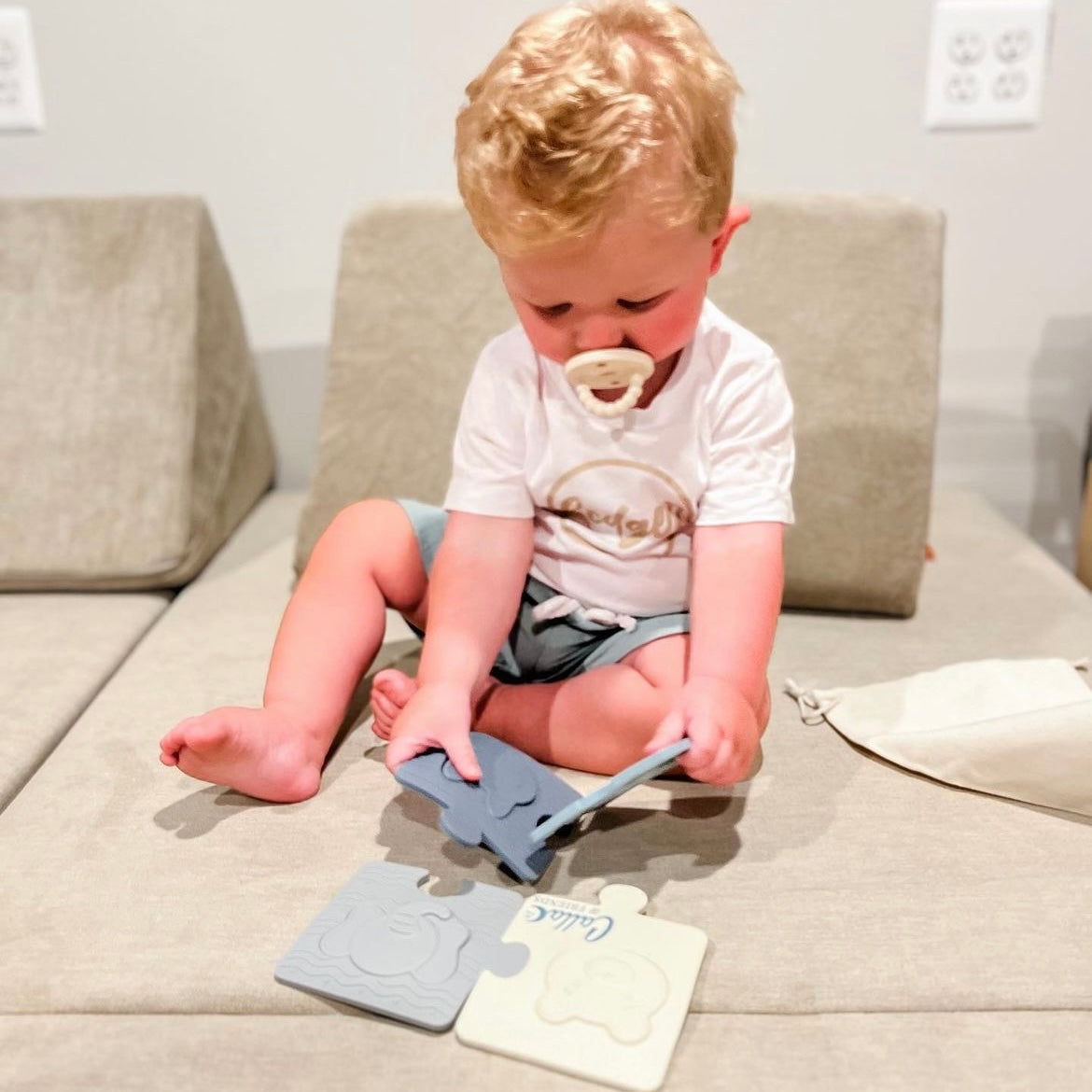 Not only does this puzzle provide endless educational fun, but it also helps develop fine motor skills and hand-eye coordination, giving your little one a head start in their development journey. With the Lincoln Puzzle, they'll have a blast matching the soft, yet durable, silicone animal pieces together.