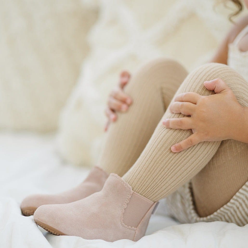 Sizes 5–13 feature our barefoot sole. Sizes 2–4 include our original non-slip soft soles—intentionally designed to support the earliest stages of walking. The leather sole in these smaller sizes allows for the most natural movement and optimal foot development.