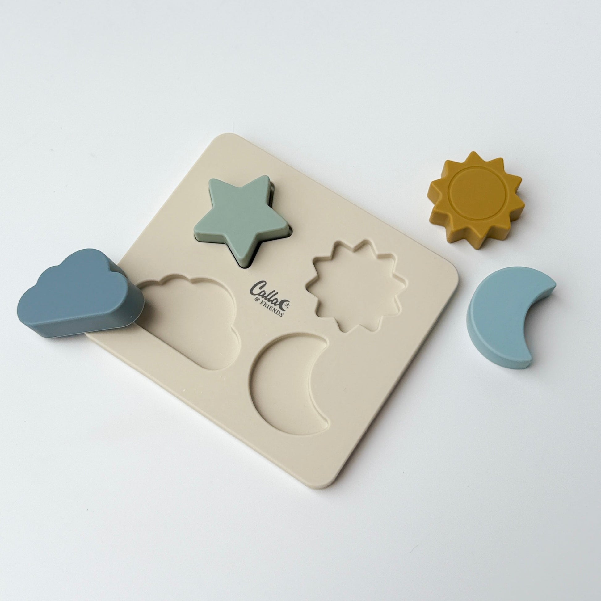 Unleash their imagination and reach for the stars with our Thomas puzzle! Crafted from food-grade silicone, this puzzle is not only entertaining, but also a safe teething companion for your little ones. Watch as their curiosity takes flight while they piece together the stars, clouds, moon, and sun. Enhance their cognitive skills through matching and provide soothing relief during teething. It comes in our convenient cotton drawstring storage bag, making it perfect to throw in your diaper bag & keep all the pieces together. Let their journey to the sky begin with the Thomas Puzzle!