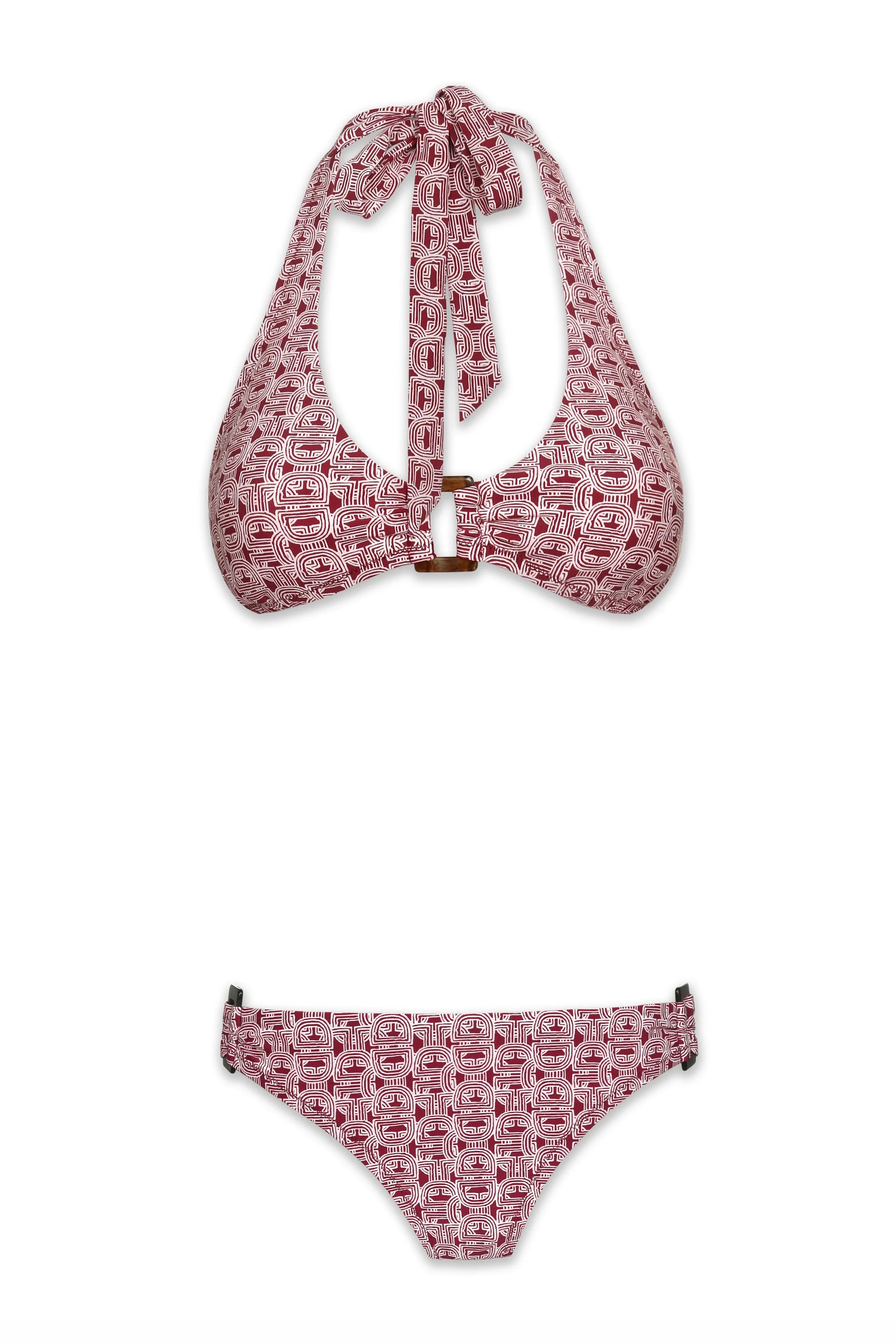 Links is bold yet wearable, a retro-inspired chain-link print introduced in Merlot and pale Blush. Its geometric rhythm and refined palette feel worldly and exotic, while still grounded in timeless preppy chic. This resortwear print transitions seamlessly from poolside afternoons to moonlit seaside gatherings, making it a versatile choice for any beach getaway.
