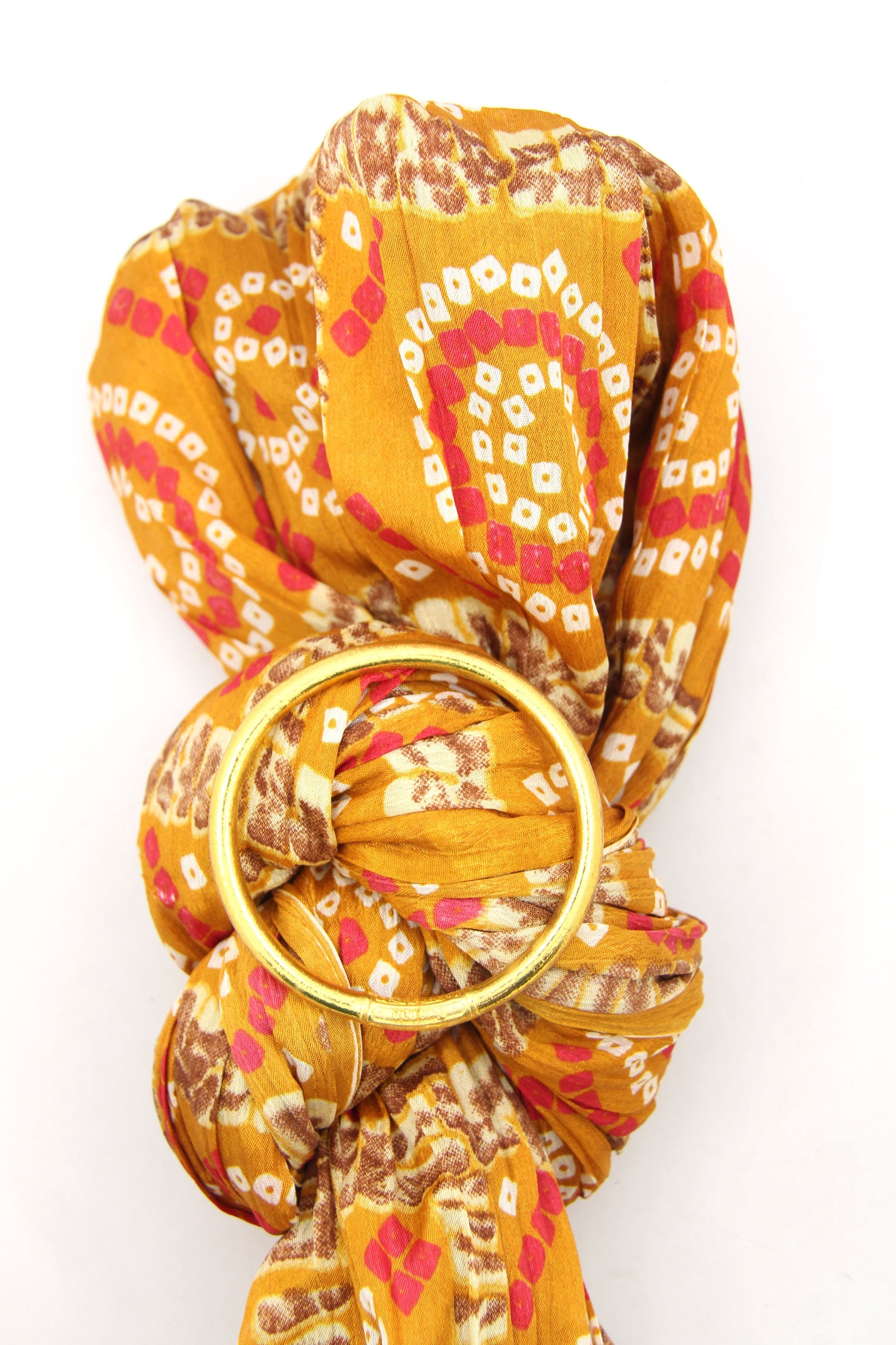 - Hand-dyed bandhani scarf, in your choice of 4 colors. Each scarf is a gorgeous display of color and no two are alike. These scarves measure approximately 40 x 84". They have a tasseled trim on the edges.