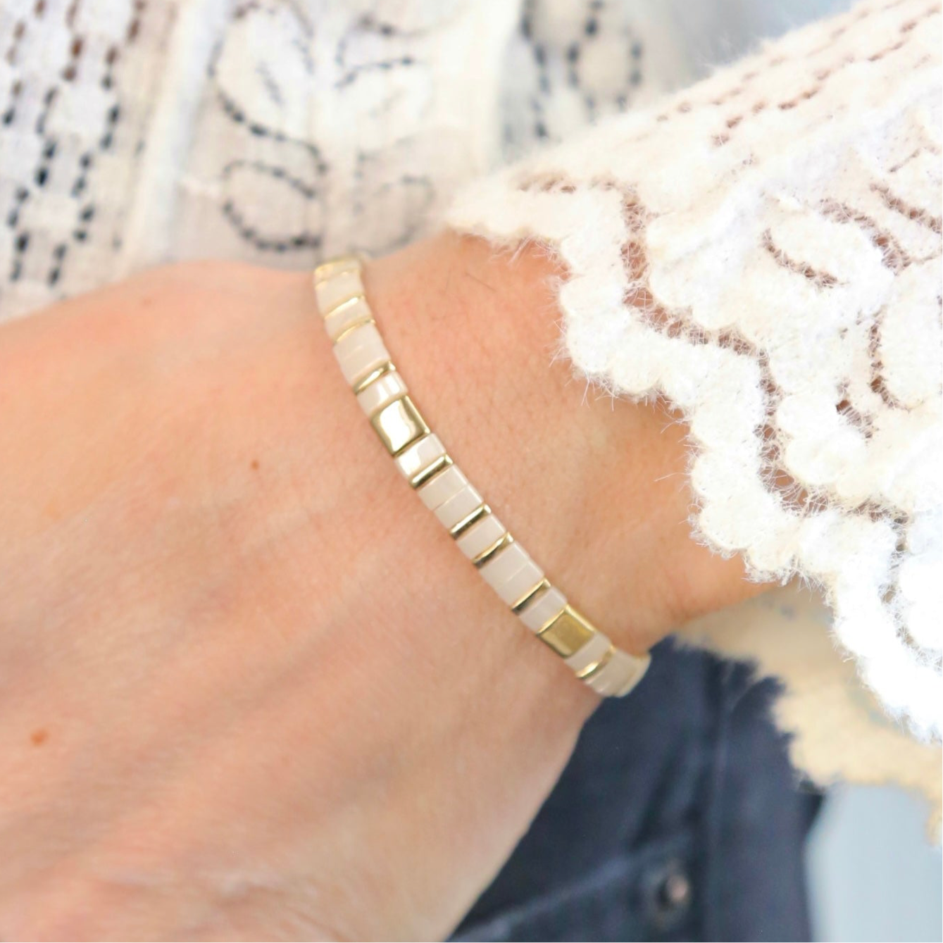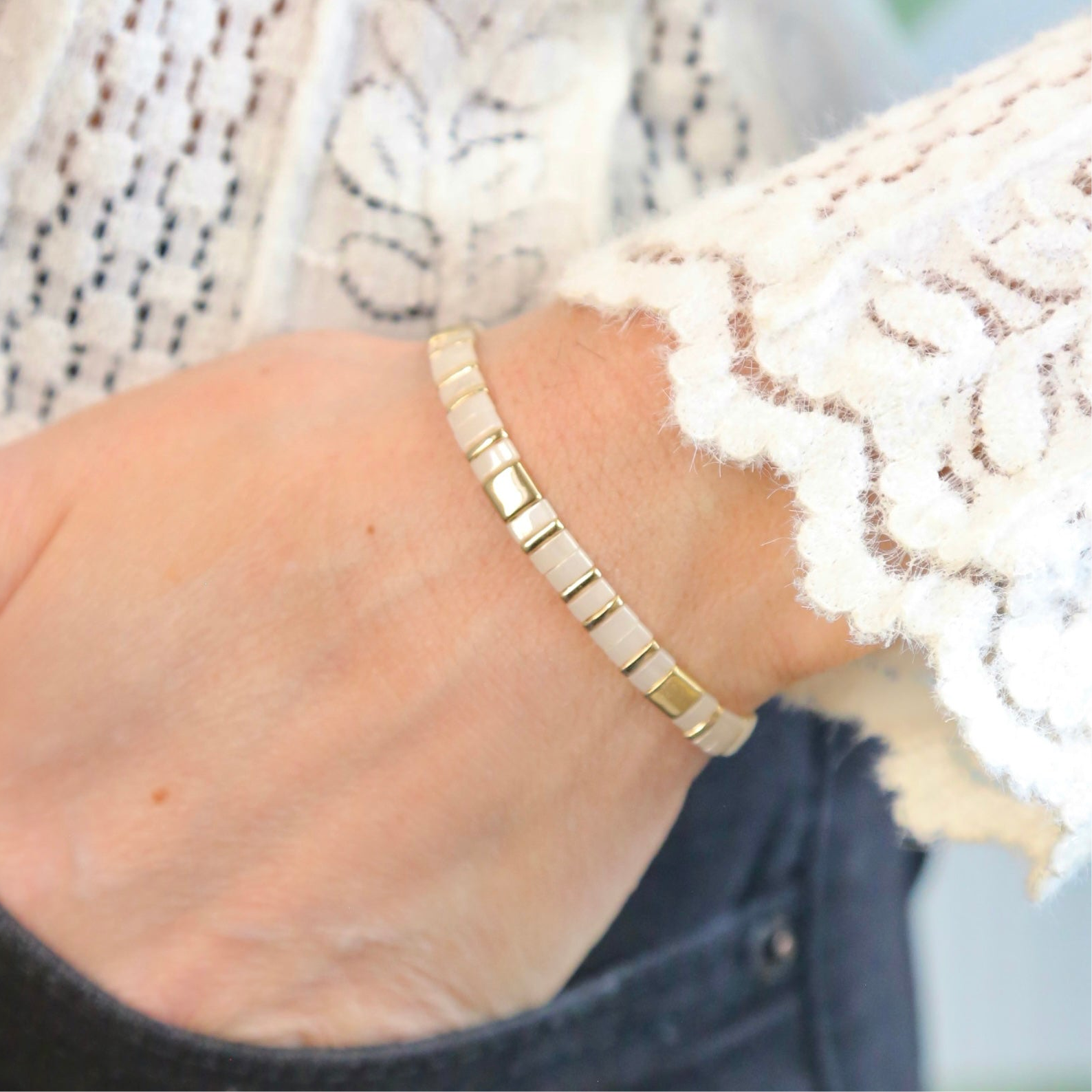 Tila Bracelets by Mack & Rex are NOT your typical beaded bracelets! We proudly back up our bracelets with a quality guarantee (yes, on stretchy bracelets!) and know that you will love them! They are made with an expensive crystal cord elastic, as well as glass tile beads from the top manufacture in Japan. In addition to being beautiful, our stretchy bead bracelets are: