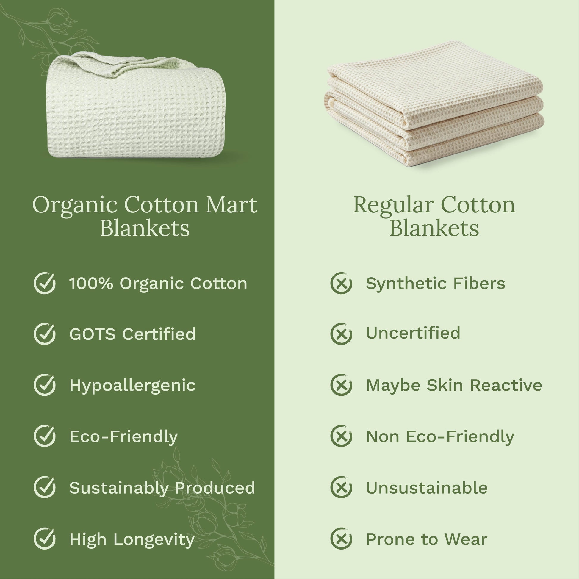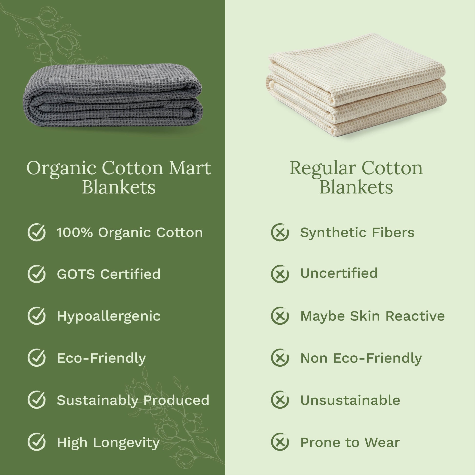 100% Pure Cotton: Our Waffle weave blanket is made using only 100% cotton that’s lightweight, breathable, and gentle on the skin. This blanket is durable and maintains its soft texture to provide the perfect fit for sensitive and delicate skin.