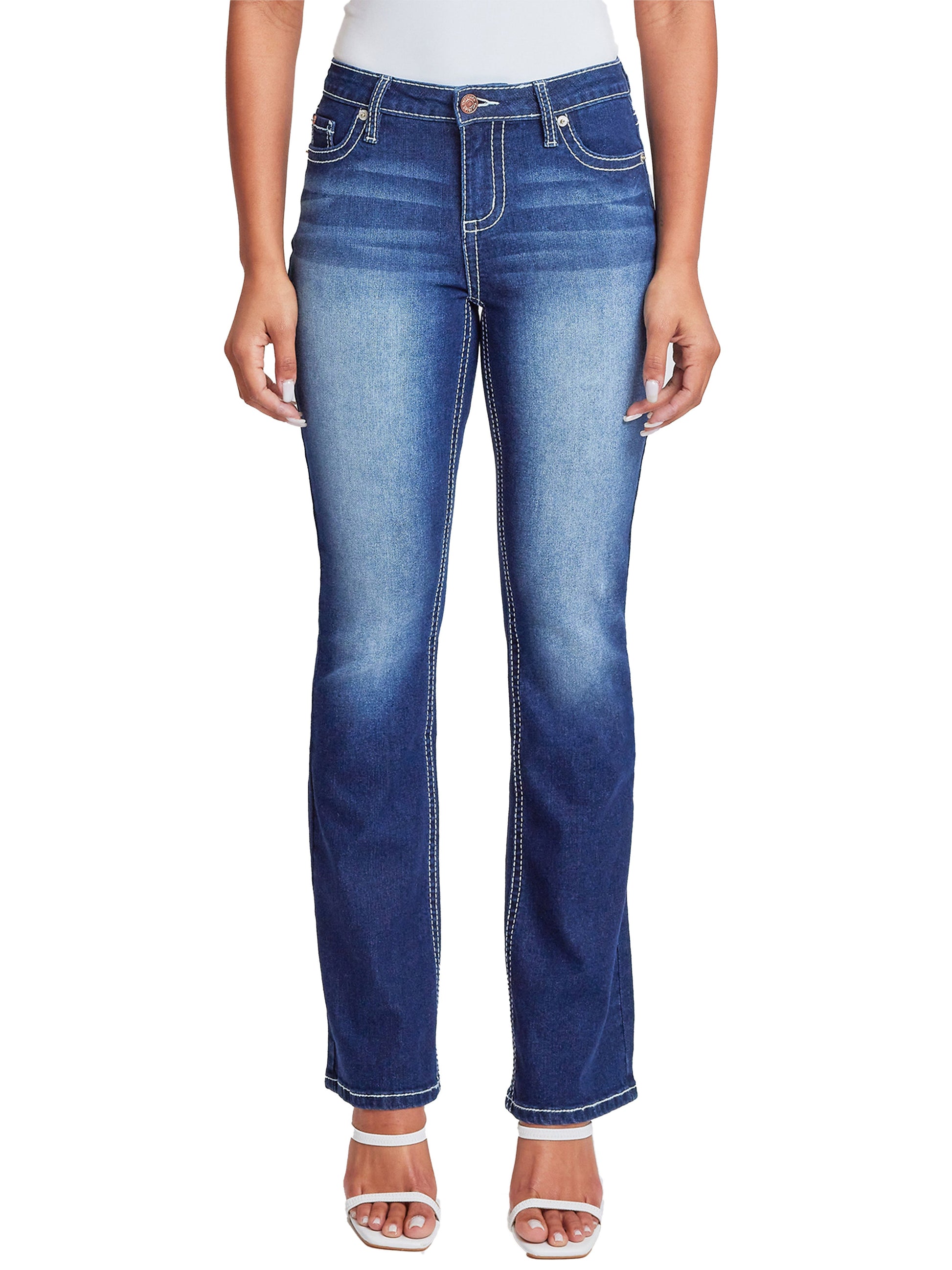 Our Women's Heavy Stitch Bootcut Jeans feature embroidered back pockets and detailed stitching throughout. Embellished with heavy white thread stitching and designed to flatter your figure, these bootcut jeans will elevate your everyday style.